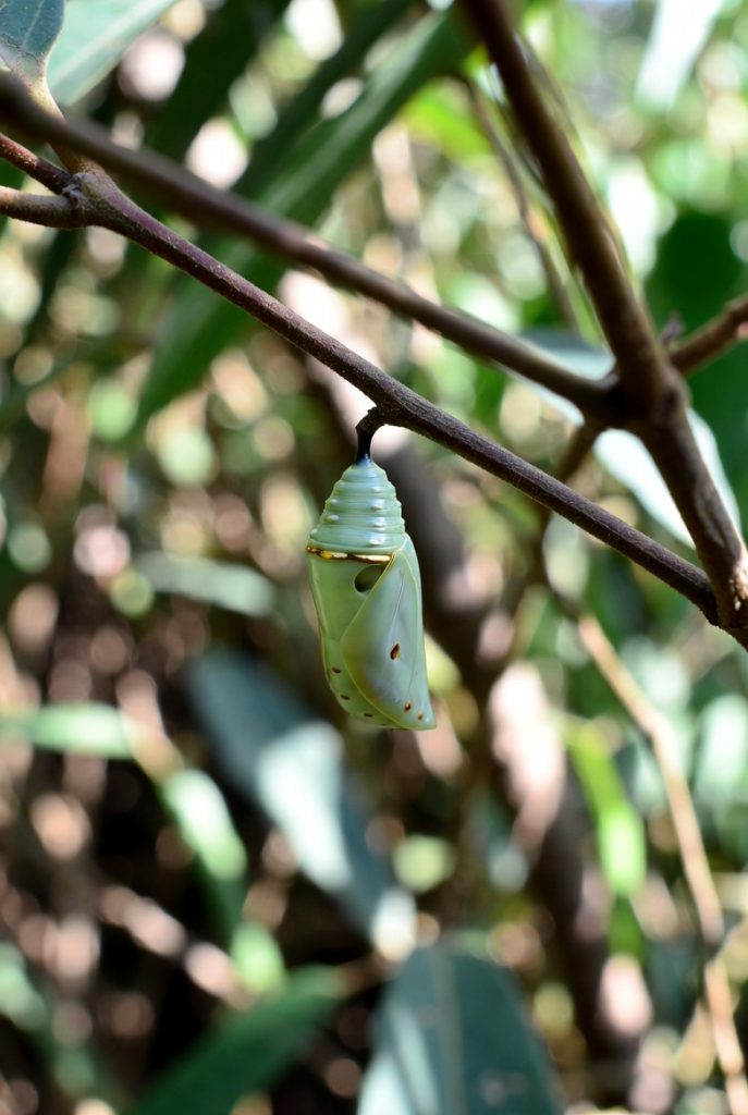 Tala, “It’s the middle stage between caterpillar and butterfly. Look on the underside of leaves or on stems to find them.”